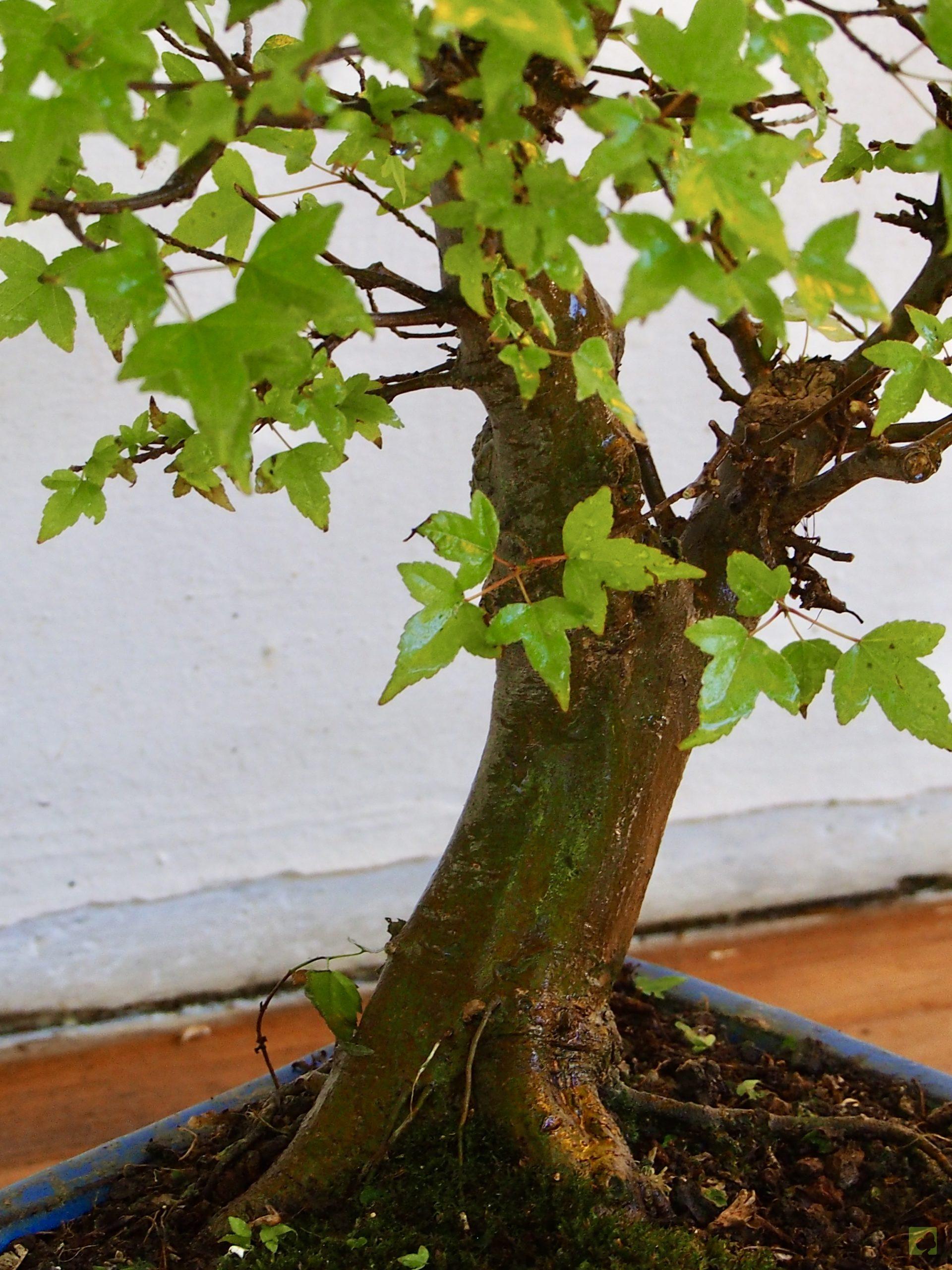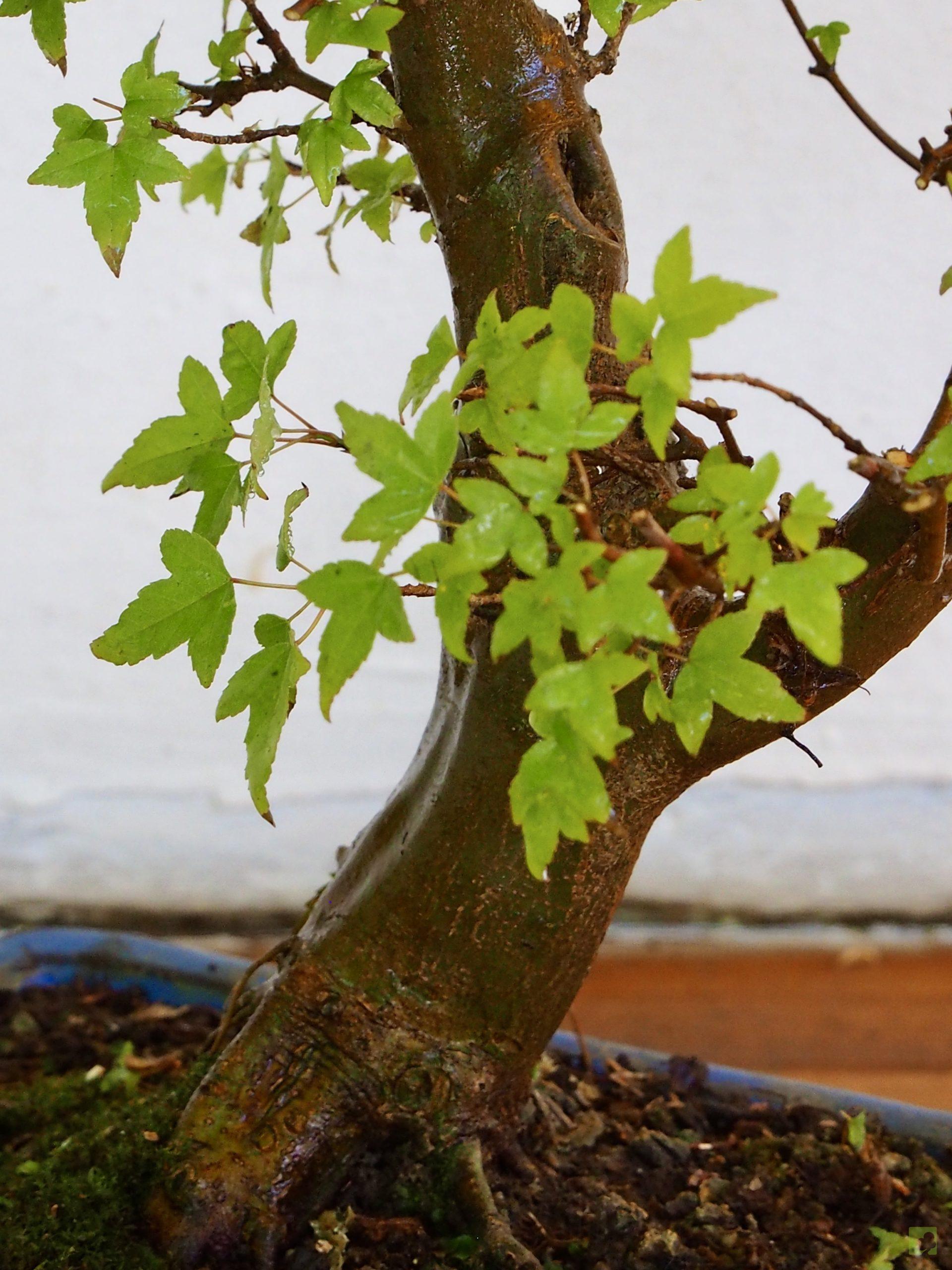 – Trasplante: Cada 2 años, y los árboles muy jóvenes anualmente. Se efectúa justo después de la caída de las hojas o antes de la brotación de las yemas. Durante el trasplante se deben las raíces podridas y eliminar bien toda la tierra vieja. Cuando la base del tronco esté limpia y a la vista, se podan completamente las raíces que nazcan directamente de dicha base. En los sucesivos trasplantes de nuestro arce debemos ir eliminando las raíces que crecen hacia abajo, dejando sólo las que crecen en horizontal, conseguiremos de esta forma una interesante base de raíces. Tras la poda de raíces está débil, por lo que no le conviene sufrir heladas. Por este motivo, se recomienda hacerlo a finales de invierno o principios de primavera.
