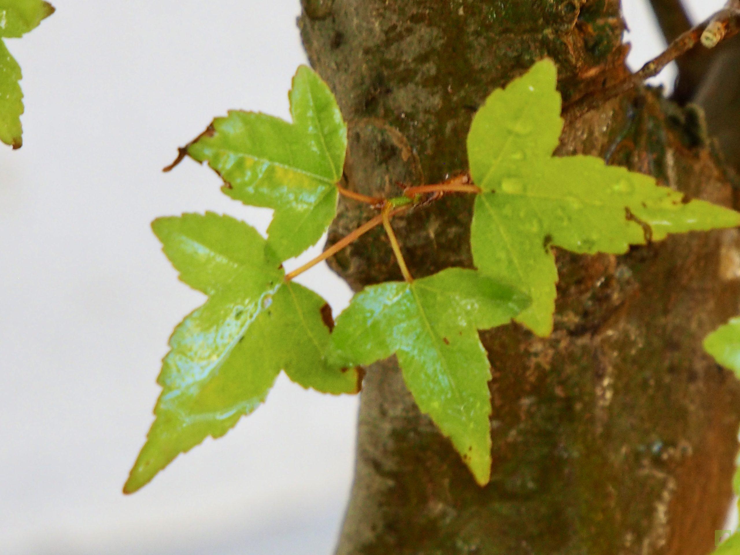 – Poda: Debido a que las yemas son opuestas, los brotes serán dobles y, por tanto, debemos fijarnos en la dirección que nos interesa para la nueva rama y eliminar el brote no deseado. Esta técnica nos permitirá un aumento de ramificación en la dirección elegida. Las ramas, al igual que el tronco, son robustas por lo que siempre debemos eliminar las ramas toscas y gruesas, dejando las más finas. Este es un proceso continuo que debemos repetir estación a estación ya que es el modo de lograr una ramificación fina y delicada. En el segundo año, también en invierno, deben podarse las ramas que nazcan directamente del tronco y afeen la silueta del árbol, utilizando una buena pasta selladora. Crece rápido y obliga a un despunte frecuente, de 2 yemas. Hacer 3 ó 4 despuntes en el transcurso del verano. Esto permite obtener unos arbolitos bien tupidos. Es muy peligroso para la vida del arce podar ramas gruesas fuera del invierno. En verano puede realizarse el defoliado total o parcial sin demasiados problemas, siempre que no se lleve a cabo demasiado tarde dentro de la estación. Por otra parte, es necesario, al principio, dejar que las ramas bajas crezcan libremente para que así engorden y lograr un crecimiento adecuado de esta zona baja.