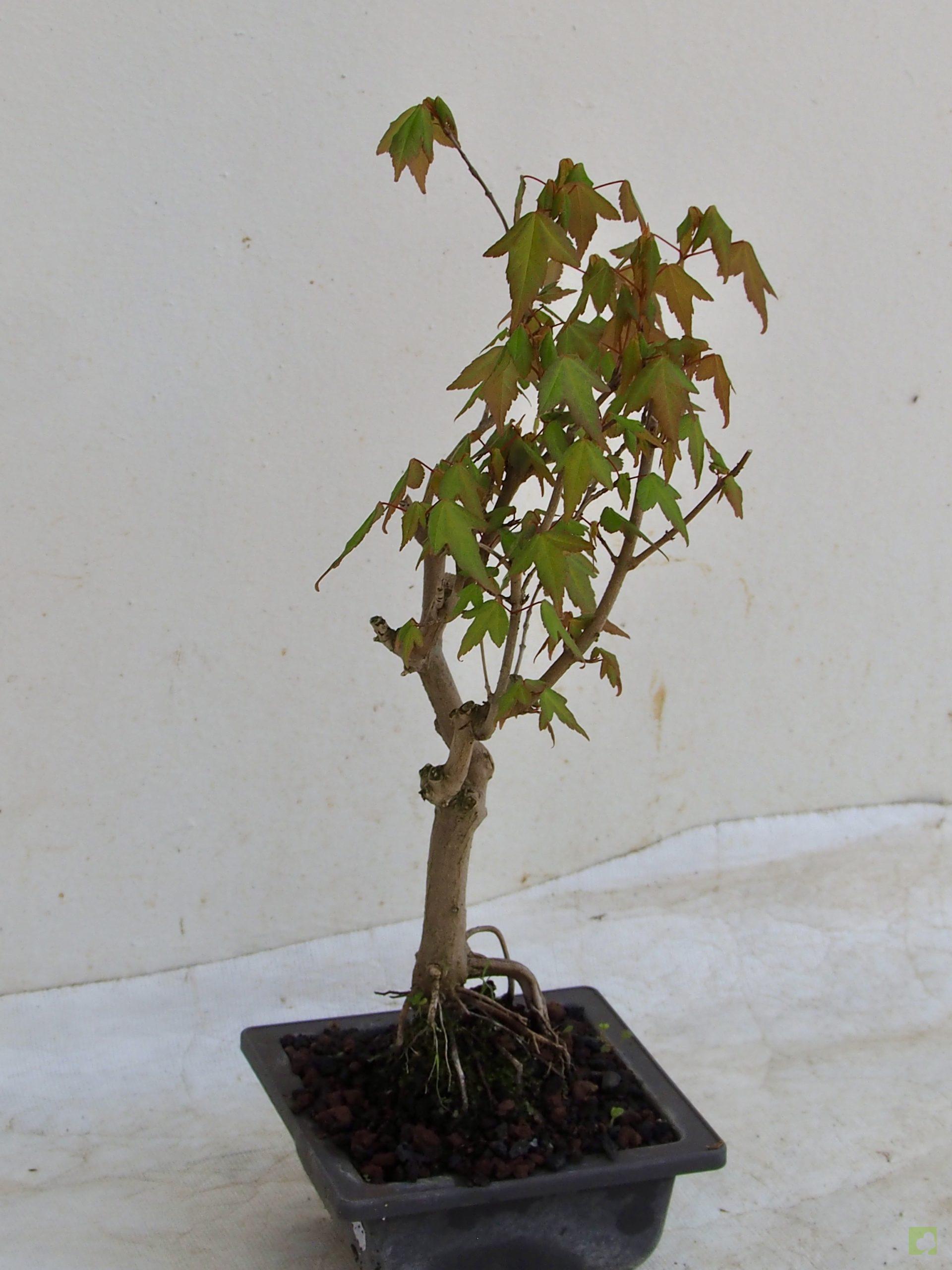 – Poda: Debido a que las yemas son opuestas, los brotes serán dobles y, por tanto, debemos fijarnos en la dirección que nos interesa para la nueva rama y eliminar el brote no deseado. Esta técnica nos permitirá un aumento de ramificación en la dirección elegida. Las ramas, al igual que el tronco, son robustas por lo que siempre debemos eliminar las ramas toscas y gruesas, dejando las más finas. Este es un proceso continuo que debemos repetir estación a estación ya que es el modo de lograr una ramificación fina y delicada. En el segundo año, también en invierno, deben podarse las ramas que nazcan directamente del tronco y afeen la silueta del árbol, utilizando una buena pasta selladora. Crece rápido y obliga a un despunte frecuente, de 2 yemas. Hacer 3 ó 4 despuntes en el transcurso del verano. Esto permite obtener unos arbolitos bien tupidos. Es muy peligroso para la vida del arce podar ramas gruesas fuera del invierno. En verano puede realizarse el defoliado total o parcial sin demasiados problemas, siempre que no se lleve a cabo demasiado tarde dentro de la estación. Por otra parte, es necesario, al principio, dejar que las ramas bajas crezcan libremente para que así engorden y lograr un crecimiento adecuado de esta zona baja.