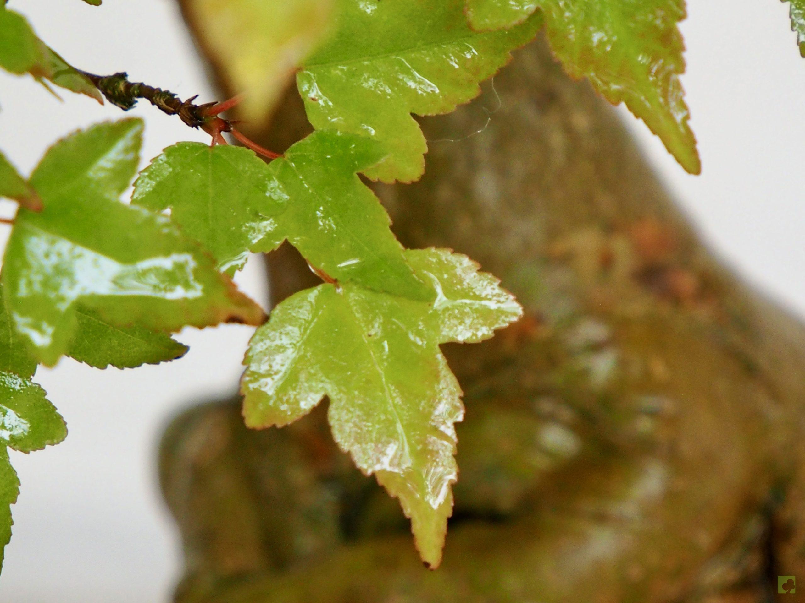 – Poda: Debido a que las yemas son opuestas, los brotes serán dobles y, por tanto, debemos fijarnos en la dirección que nos interesa para la nueva rama y eliminar el brote no deseado. Esta técnica nos permitirá un aumento de ramificación en la dirección elegida. Las ramas, al igual que el tronco, son robustas por lo que siempre debemos eliminar las ramas toscas y gruesas, dejando las más finas. Este es un proceso continuo que debemos repetir estación a estación ya que es el modo de lograr una ramificación fina y delicada. En el segundo año, también en invierno, deben podarse las ramas que nazcan directamente del tronco y afeen la silueta del árbol, utilizando una buena pasta selladora. Crece rápido y obliga a un despunte frecuente, de 2 yemas. Hacer 3 ó 4 despuntes en el transcurso del verano. Esto permite obtener unos arbolitos bien tupidos. Es muy peligroso para la vida del arce podar ramas gruesas fuera del invierno. En verano puede realizarse el defoliado total o parcial sin demasiados problemas, siempre que no se lleve a cabo demasiado tarde dentro de la estación. Por otra parte, es necesario, al principio, dejar que las ramas bajas crezcan libremente para que así engorden y lograr un crecimiento adecuado de esta zona baja.