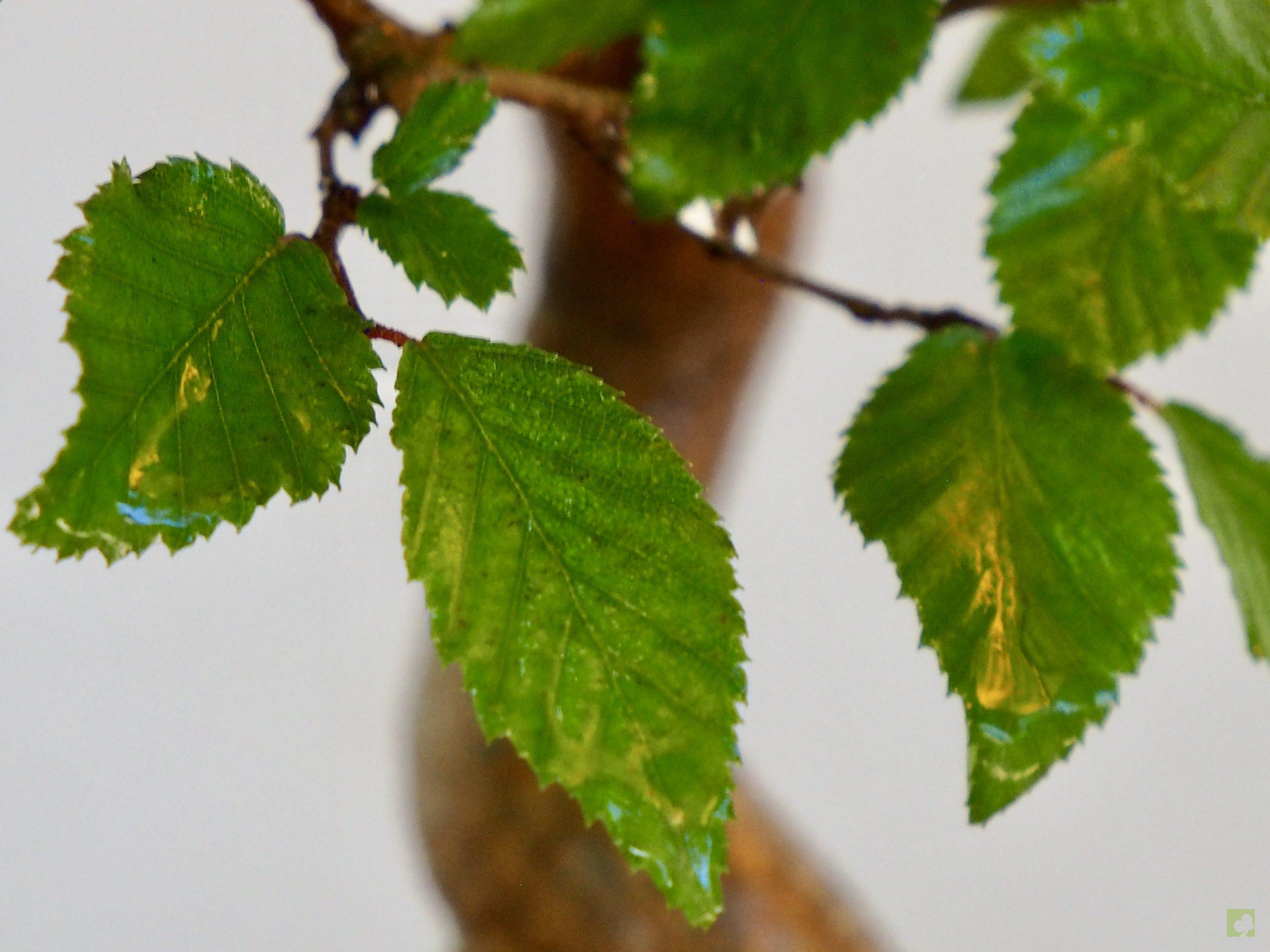 Arbol caducifolio de hojas alternas, prominentemente dentadas muy pequeñas de color verde medio claro y naranjas o rojas en otoño, suelen permanecer todo el invierno. Si los veranos son muy calurosos las hojas se queman, la corteza tiene acanaladuras de color purpura plateado.