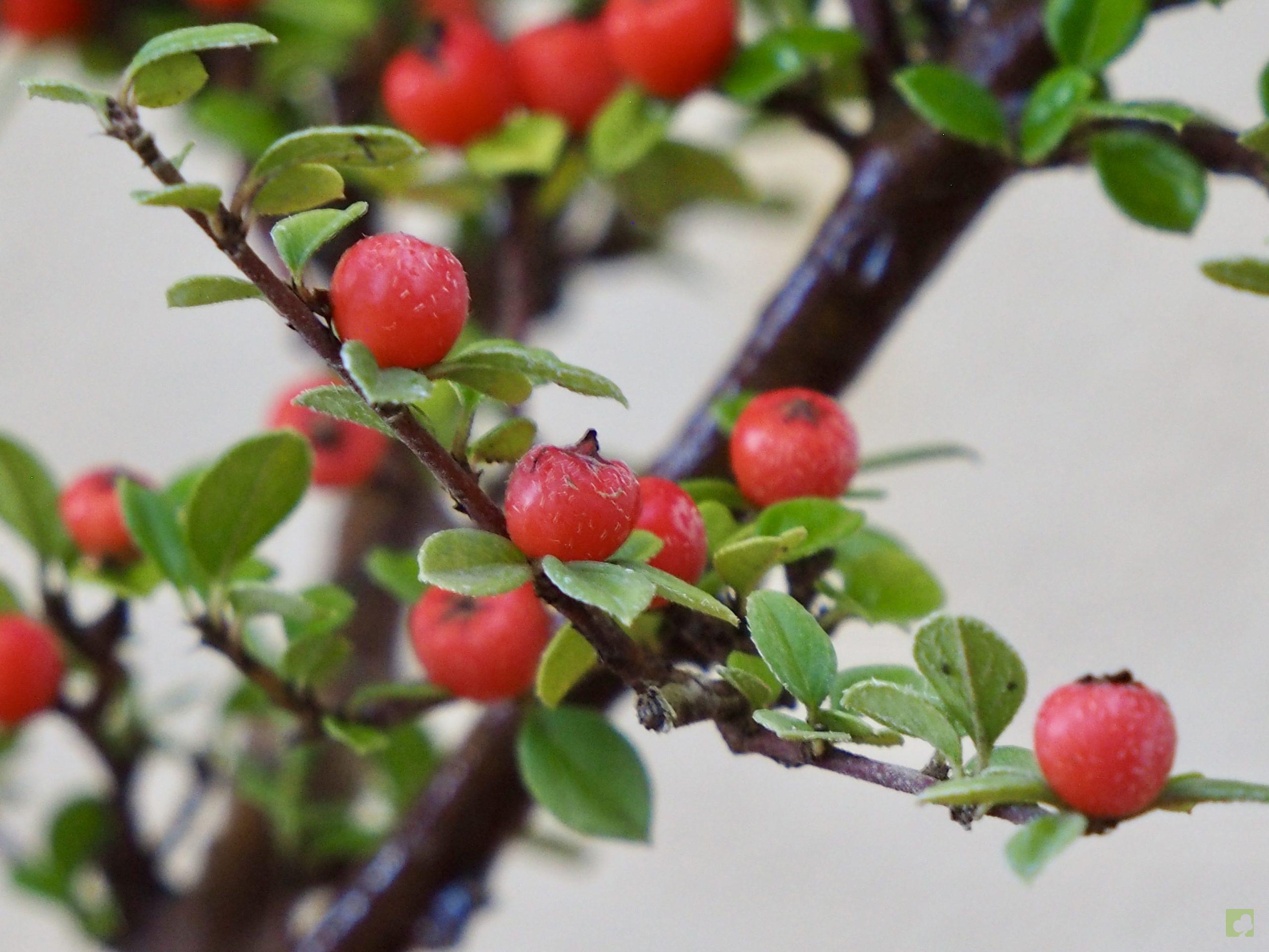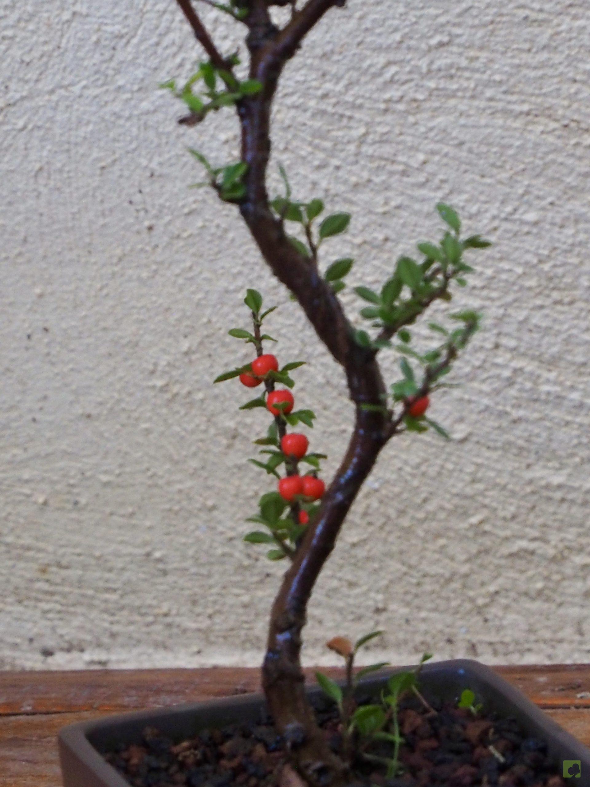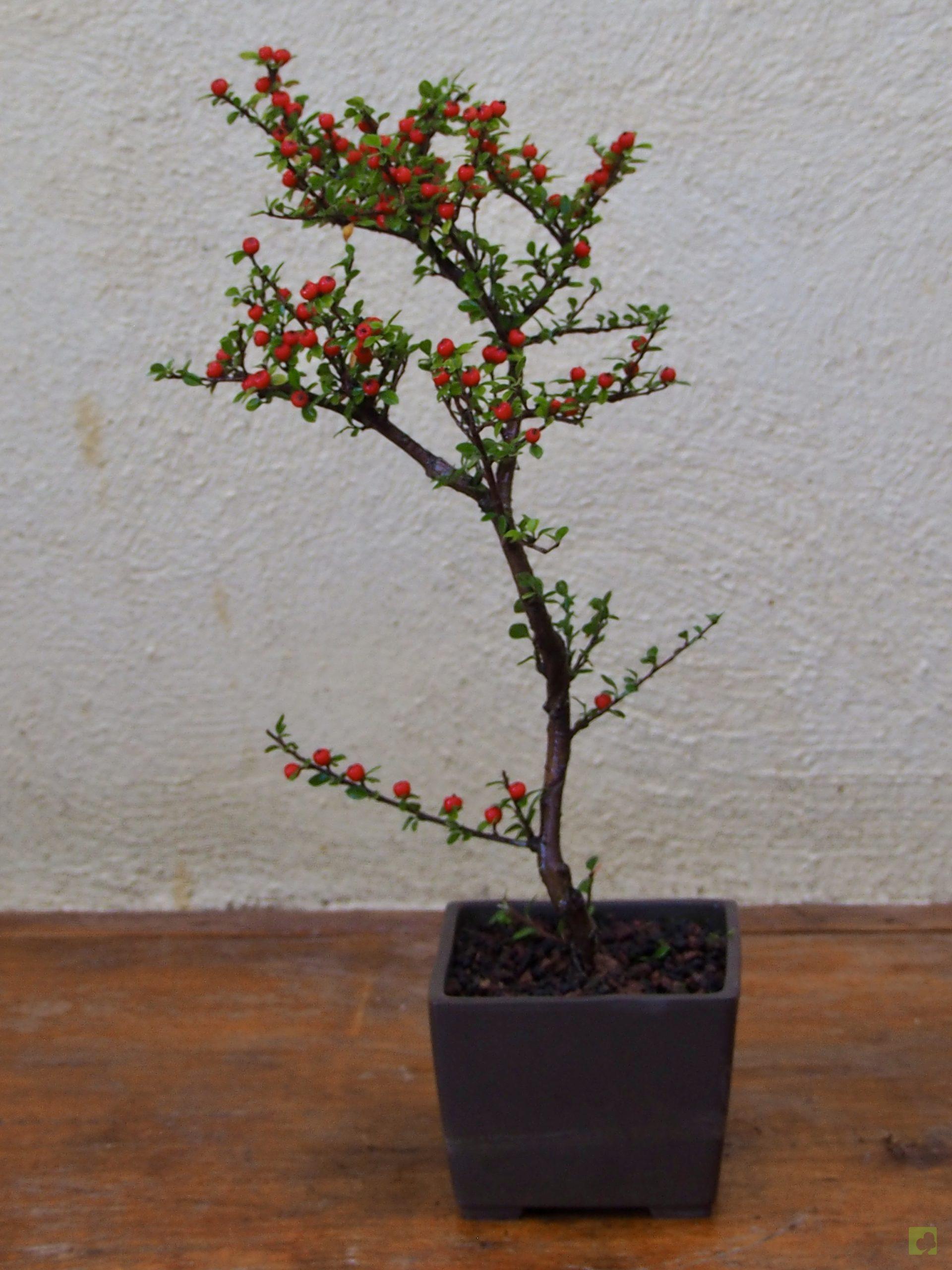 La especie más usada en el mundo del bonsái es el Cotoneaster Horizontalis, muy apreciado por su densa ramificación y sus pequeñas hojas. Es una especie ideal para principiantes aún siendo muy poco conocida en España. Es muy resistente, ya que su hábitat natural son zonas pedregosas en las montañas. En primavera y verano producen pequeñas flores de color blanco o rosado, y en otoño bayas de color rojo o negro.