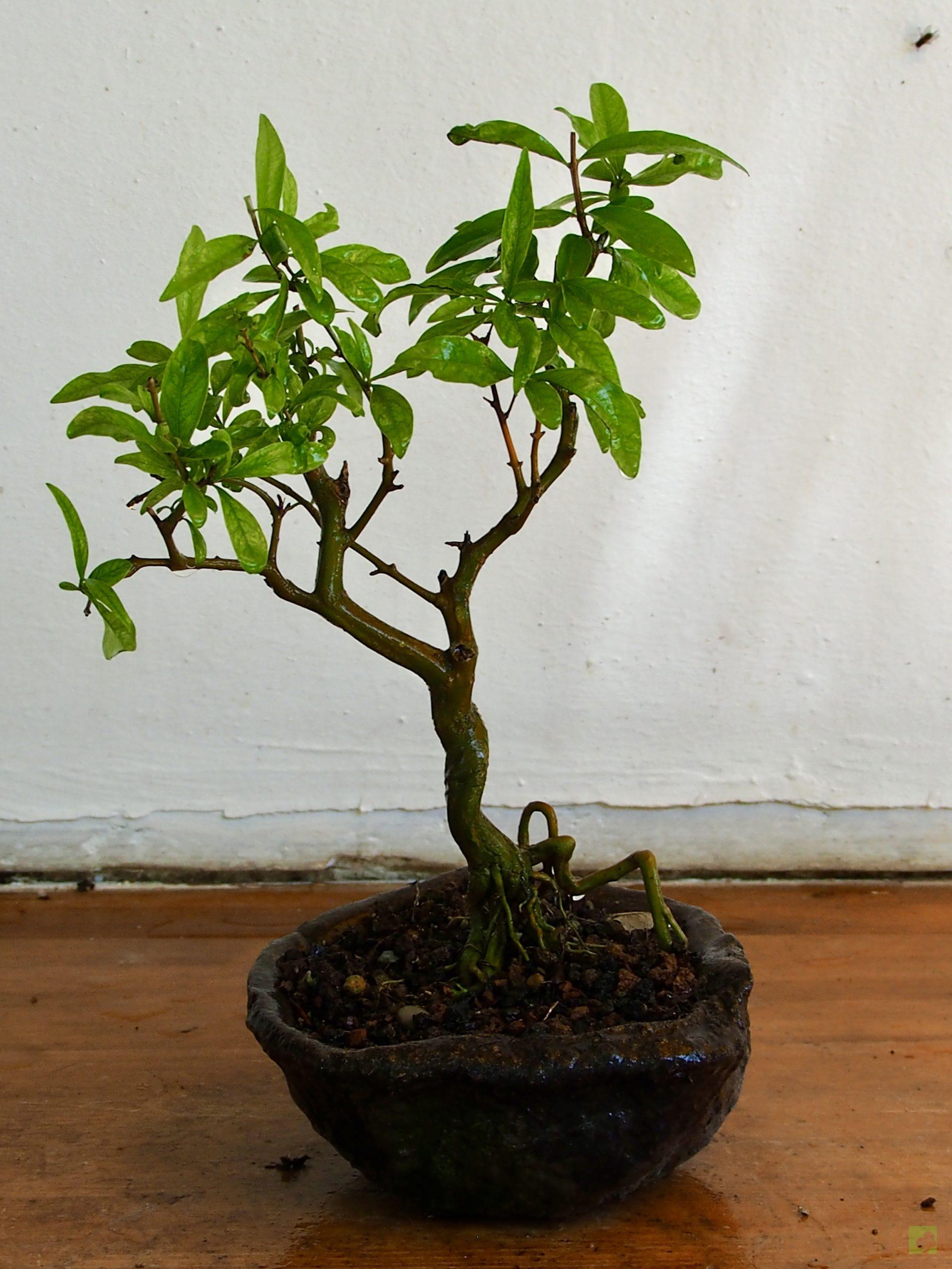 El Granado es un bonsái que puede ser podado durante todo el año, aunque es recomendable hacerlo al inicio de la brotación primaveral. Cortar todos los brotes de la base del tronco. Al comienzo de su formación como bonsái es más importante modelarlo correctamente desde el principio en vez de preocuparnos por las flores y los frutos, aunque podemos tener en cuenta que las flores salen de las puntas de las ramas nuevas y, por tanto, podemos fijarnos en las yemas y tratar de dejar alguna que nos dé flor. Si se dejan muchas granadas en una rama, ésta tiene tendencia a secarse al año siguiente.