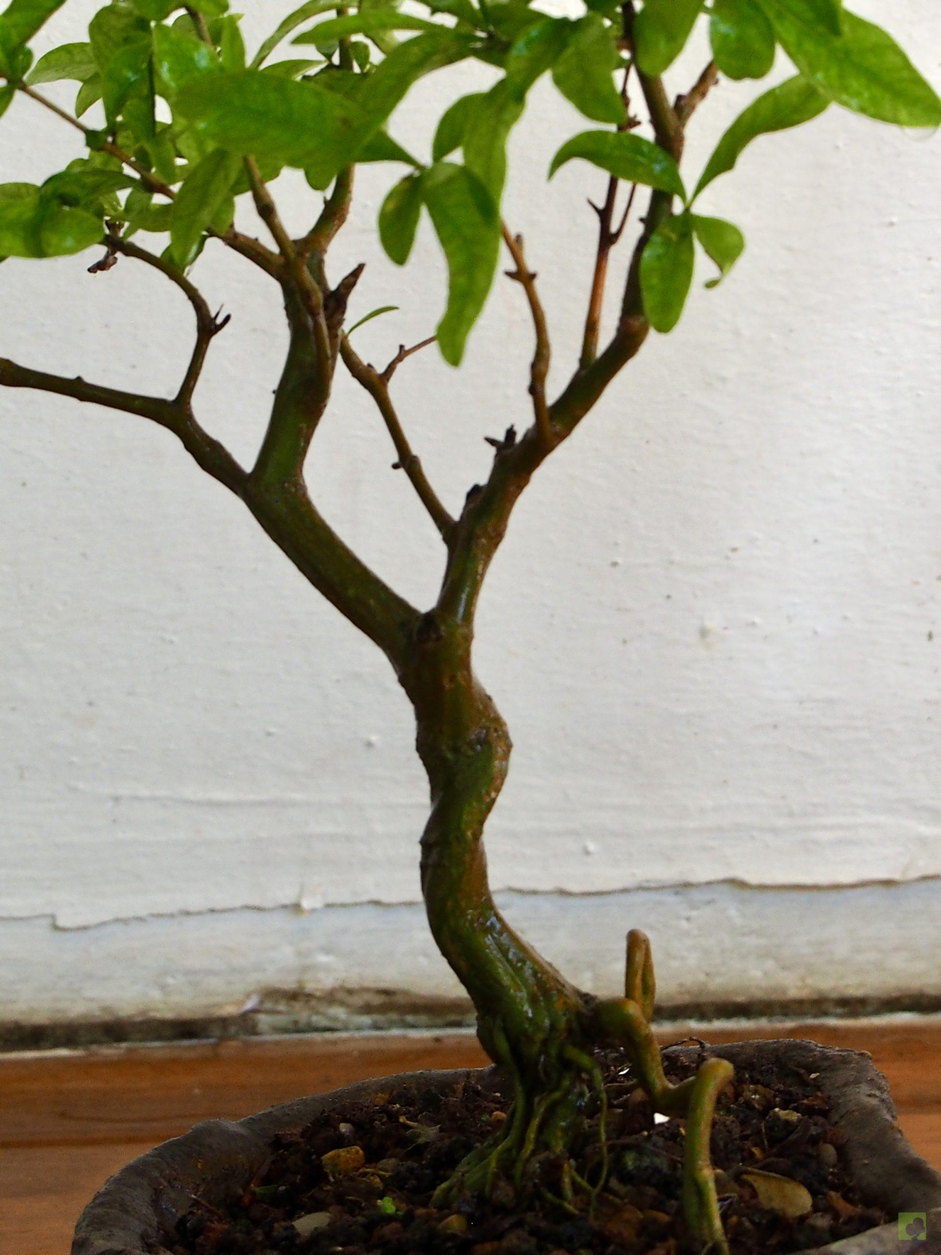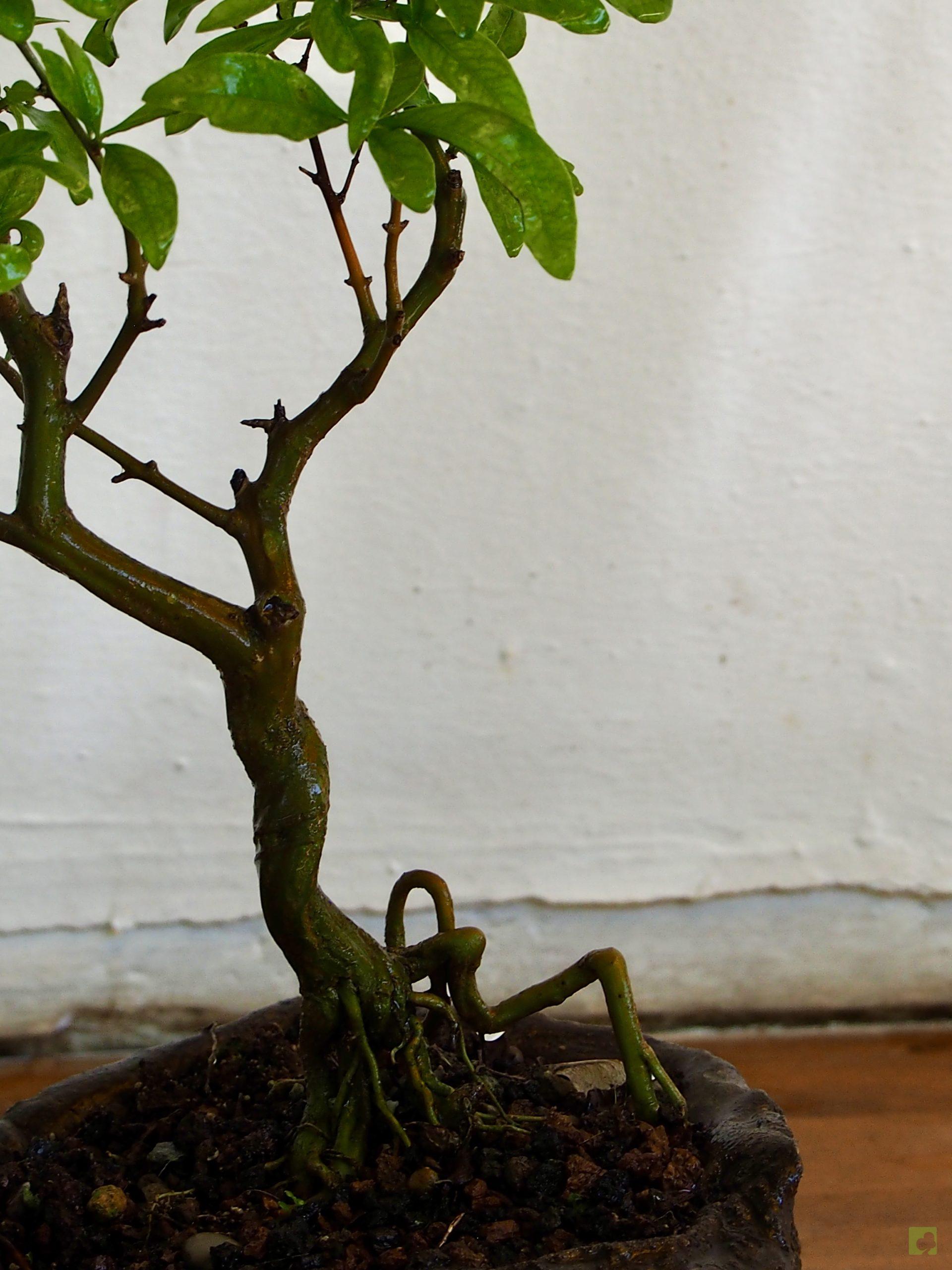 – Trasplante: Cada 2 ó 3 años, al comienzo de la primavera y en los ejemplares más viejos puede aumentarse la periodicidad a 3 años. La época idónea para efectuarlo es cuando el árbol haya brotado con un par de hojas. Durante el trasplante conviene sanear bien cualquier parte de raíces podridas. Es necesario cambiar la tierra agotada, realizando un desenredo de las raíces y recortando un tercio de las mismas. Podar las raíces durante el trasplante pero sin cortar demasiadas raíces finas para permitir que pueda recuperarlas durante el invierno. Si el árbol está sano y es joven, una poda drástica de raíces suele estimular el crecimiento de nuevas y, por tanto, el rejuvenecimiento del árbol, pero en el caso del granado es conveniente evitar la poda de raíces gruesas para evitar que se sequen ramas importantes. Si cortamos una raíz gruesa, no veremos ningún efecto inmediato pero al cabo de los años la corteza se irá secando poco a poco hasta que la rama afectada muera totalmente. Entre la poda de ramas y el trasplante (o viceversa) debería existir un intervalo mínimo de tiempo para no acumular demasiadas operaciones agresivas a la vez, por ejemplo, 3 semanas. Es conveniente proteger el árbol después del trasplante durante un par de meses, situándolo en un lugar muy bien iluminado pero evitando las exposición directa al sol.