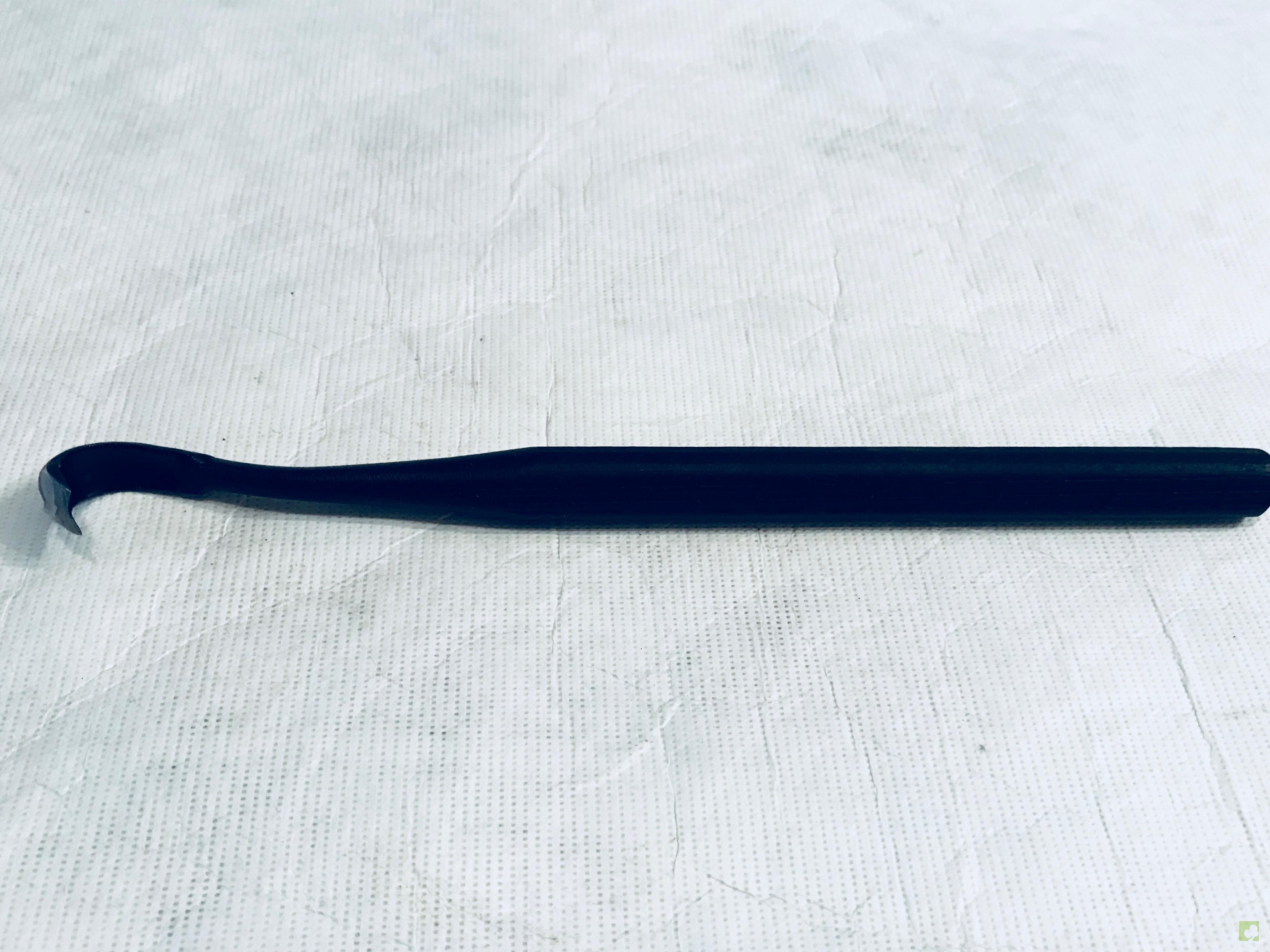 Gúbia 195mm. Esta gubia permite pelar la corteza con facilidad y precisión. La forma de esta gubia permite pelar la corteza tirando de la herramienta hacia atrás, con lo que podemos trabajar con muchas más facilidad y de forma más ajustada que con una gubia normal. Esta herramienta se utiliza para formar madera seca en los troncos de los bonsáis, así como para mejorar su forma, recortando la corteza de los bordes.
