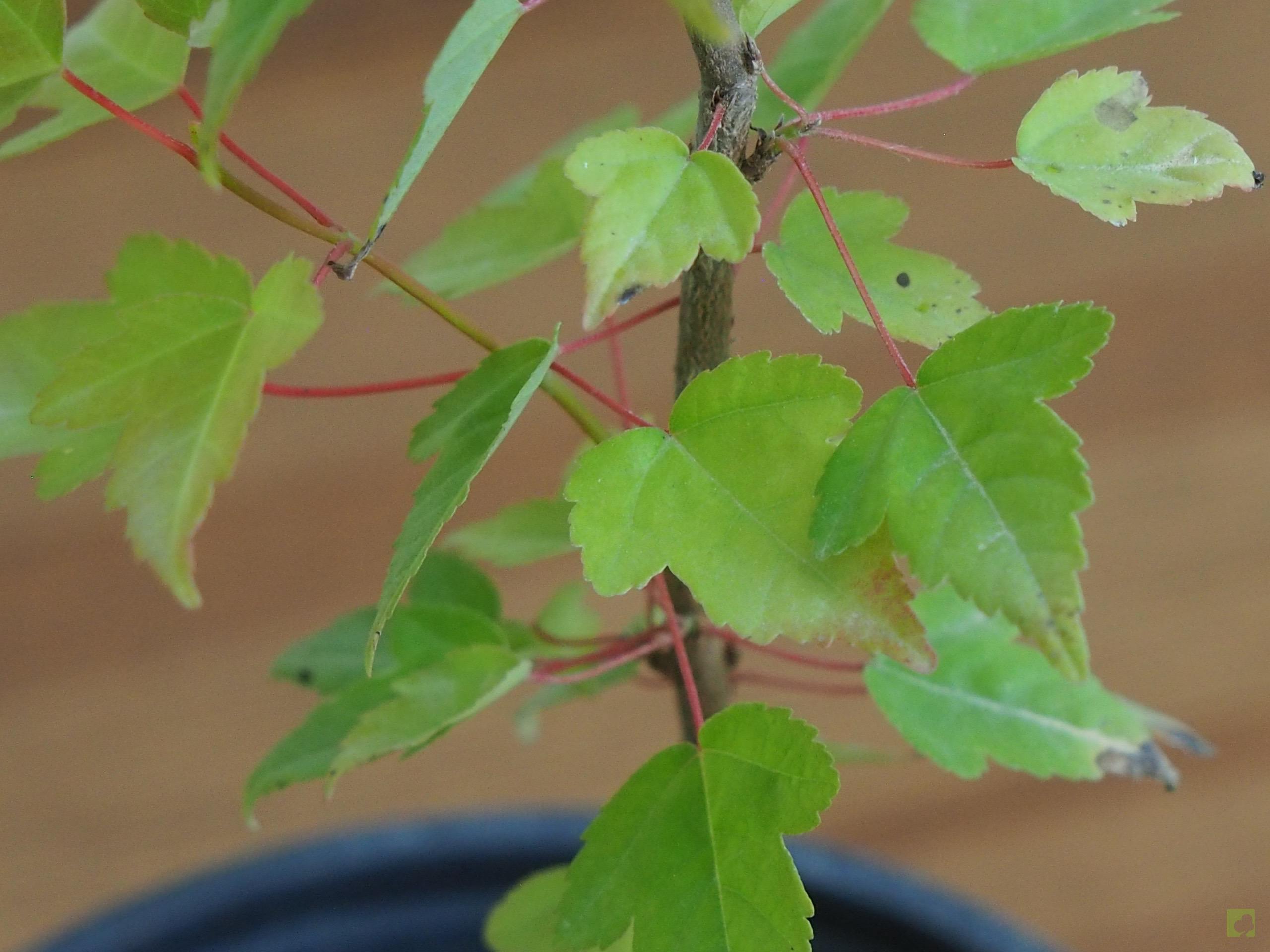 Sus hojas con tres lóbulos a modo de tridente, dan su nombre de “Arce Tridente”. Sus hojas de color verde en otoño cambian a amarillas anaranjadas e incluso a rojas.