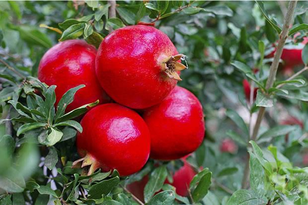 – El Granado es un árbol caducifoliio. Hojas oblongas y brillantes, situadas sobre ramas ligeramente espinosas. Florece en verano con flores de un vivo color escarlata y cáliz coriáceo, aunque también pueden ser blancas, rosadas o incluso amarillentas. Su fruto, es la conocida granada, con una jugosa pulpa roja comestible. La variedad miniatura Punica granatum ‘Nana’ es muy apta y difundida. Posee hojas, flores y frutos parecidos a los del granado común, aunque todo es de tamaño mucho más reducido.