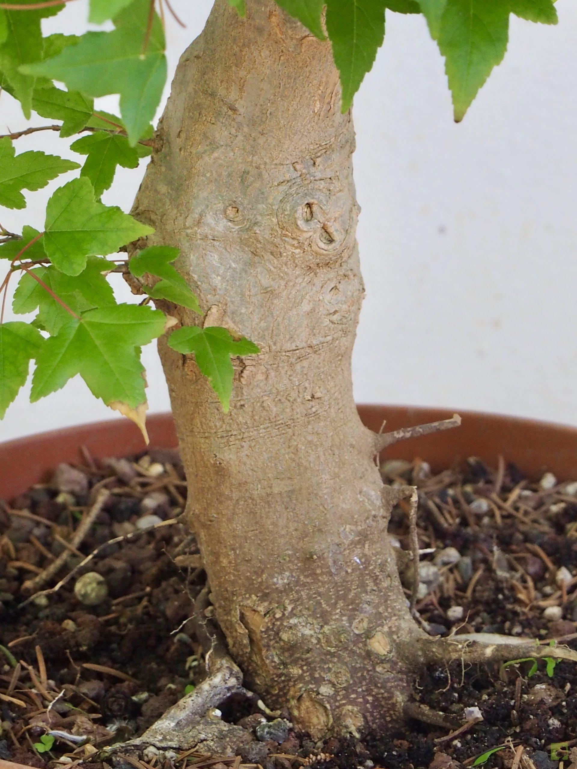 – Trasplante: Cada 2 años, y los árboles muy jóvenes anualmente. Se efectúa justo después de la caída de las hojas o antes de la brotación de las yemas. Durante el trasplante se deben las raíces podridas y eliminar bien toda la tierra vieja. Cuando la base del tronco esté limpia y a la vista, se podan completamente las raíces que nazcan directamente de dicha base. En los sucesivos trasplantes de nuestro arce debemos ir eliminando las raíces que crecen hacia abajo, dejando sólo las que crecen en horizontal, conseguiremos de esta forma una interesante base de raíces. Tras la poda de raíces está débil, por lo que no le conviene sufrir heladas. Por este motivo, se recomienda hacerlo a finales de invierno o principios de primavera.